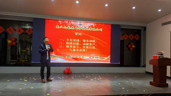 昆山九毫米總經(jīng)理,各部門負責(zé)人,特邀領(lǐng)導(dǎo)、嘉賓及百余名九毫米家人齊聚一堂,